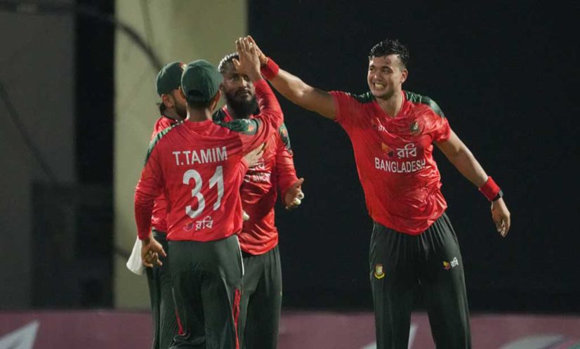 বোলিংয়ে এসেই দলকে ব্রেক থ্রু এনে দেন তাসকিন। নিজের প্রথম ওভারে নেন দুই উইকেট। শেষ দুই ওভারে নিয়েছেন আরও দুই উইকেট। ৪ ওভারে ২৮ রান দিয়ে ৪ উইকেট নিয়ে একাই ধসিয়ে দিয়েছেন প্রতিপক্ষের ব্যাটিং লাইনআপকে।