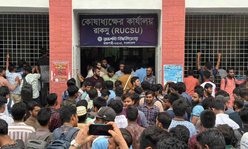 প্রত্যক্ষদর্শীরা জানান, সকাল ৯টার দিকে শাখা ছাত্রদল সভাপতি সুলতান আহমেদ রাহীর নেতৃত্বে কর্মীরা রাকসুর কোষাধ্যক্ষের কার্যালয়ে ঢুকে চেয়ার-টেবিল ভাঙচুর করে তালা দেন। তাদের দাবি ছিল—প্রথম বর্ষের শিক্ষার্থীদের ভোটার তালিকায় অন্তর্ভুক্ত করা। এসময় তারা অফিসের সামনে অবস্থান কর্মসূচি শুরু করেন।