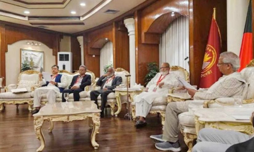 অন্তর্বর্তী সরকারের প্রধান উপদেষ্টা ড. মুহাম্মদ ইউনূসের সঙ্গে বৈঠকে অংশ নিয়েছেন বিএনপির প্রতিনিধি দল। ছবি: সংগৃহীত