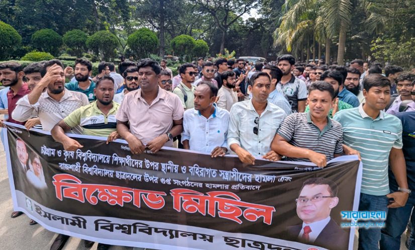 কুষ্টিয়া: চট্টগ্রাম বিশ্ববিদ্যালয় (চবি) ও বাংলাদেশ কৃষি বিশ্ববিদ্যালয়ের (বাকৃবি) শিক্ষার্থীদের ওপর স্থানীয়দের সন্ত্রাসী হামলা এবং রাজশাহী বিশ্ববিদ্যালয় (রাবি) ছাত্রদলের ওপর গুপ্ত সংগঠনের হামলা দাবি করে বিক্ষোভ মিছিল করেছে ইসলামী বিশ্ববিদ্যালয় (ইবি) শাখা ছাত্রদল।