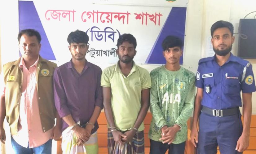 গ্রেফতার কাওছার কলাপাড়া থানার লতাচাপলী এলাকার আবুল হোসেন হাওলাদারের ছেলে, সোহাগ রিপন বরগুনা জেলার বামনা থানার পোটকাখালী গ্রামের জালাল প্যাদা এবং আশীষ গাইন কলাপাড়া পৌর শহরের নাচনাপাড়া এলাকার রনজিত গাইনের ছেলে।
