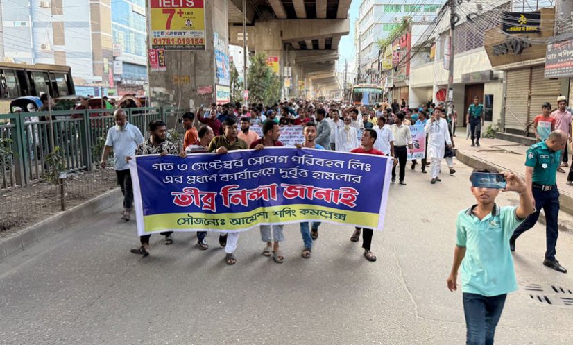 ঢাকা: রাজধানীর মালিবাগে সোহাগ পরিবহনের কাউন্টারে সংঘটিত সন্ত্রাসী হামলার প্রতিবাদে এলাকাবাসী ও ব্যবসায়ী সমাজের উদ্যোগে এক মানববন্ধন কর্মসূচি অনুষ্ঠিত হয়েছে। শুক্রবার (৫ সেপ্টেম্বর) বিকেল ৫টায় মৌচাক থেকে মালিবাগ রেলগেট পর্যন্ত এই কর্মসূচি হয়।