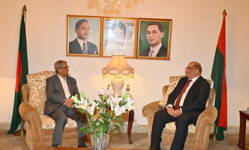 সৌজন্য সাক্ষাৎকারে ফুলেল শুভেচ্ছা বিনিময় করেন তারা।
