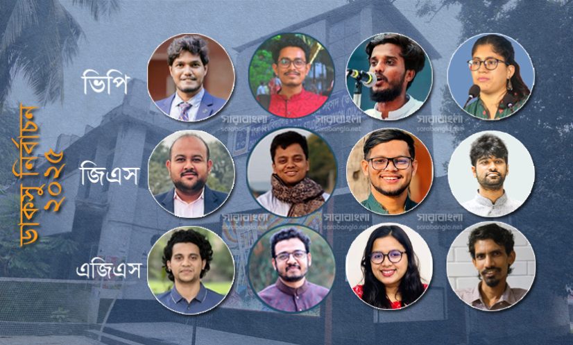 আর বাম সংগঠনগুলোর সমর্থিত প্যানেল ‘প্রতিরোধ পর্ষদ’ থেকে লড়ছেন জাবির আহমেদ জুবেল। তিনি বিপ্লবী ছাত্র মৈত্রীর সাধারণ সম্পাদক। ক্যাম্পাসে তিনি প্রতিবাদী মুখ হিসেবে পরিচিত। স্বতন্ত্র এজিএস প্রার্থীদের মধ্যে আলোচনায় রয়েছেন তাহমিদ আল মুদ্দাসসির চৌধুরী, হাসিব আল ইসলামসহ অনেকেই। তারা দু’জনই বাংলাদেশ গণতান্ত্রিক ছাত্র সংসদের সঙ্গে জড়িত। দল থেকে প্যানেল নিয়ে না এলেও স্বতন্ত্র প্রার্থী হয়ে এজিএস পদে প্রতিদ্বন্দ্বিতা করছেন তারা। তার দু’জনও ভোটের মাঠে প্রতিদ্বন্দ্বিতা করতে পারেন। তবে সর্বশেষ ফলাফলের জন্য অপেক্ষা করতে হবে আগামী ৯ সেপ্টেম্বর পর্যন্ত।