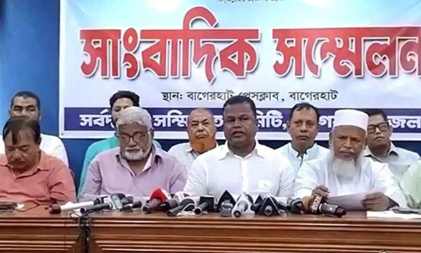 রোববার দুপুরে বাগেরহাট প্রেসক্লাবে সংবাদ সম্মেলন করেন সর্বদলীয় সম্মিলিত কমিটির নেতাকর্মীরা। জেলা বিএনপির সাবেক সভাপতি ও সর্বদলীয় সম্মিলিত কমিটির কো কনভেনর এমএ সালাম সংবাদ সম্মেলনে পাঁচ দিনব্যাপী কর্মসূচি ঘোষণা করেন। সংবাদ সম্মেলনে সর্বদলীয় সম্মিলিত কমিটির নেতারা উপস্থিত ছিলেন।
