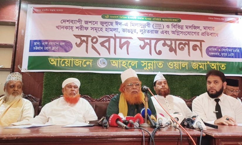 চট্টগ্রাম ব্যুরো: তৌহিদি জনতা, ঈমান সংরক্ষণ কমিটি ও সাধারণ মুসল্লিদের নাম ব্যবহার করে দেশব্যাপী পীর-আউলিয়ার মাজারে হামলাসহ মব সন্ত্রাস বন্ধের দাবি জানিয়েছে সুন্নীয়তপন্থী সংগঠন ‘আহলে সুন্নাত ওয়াল জমাআত’।