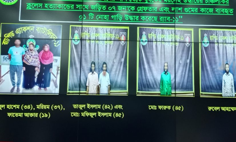 তিনি আরও বলেন, র্যাব ১১ সুনির্দিষ্ট তথ্যের ভিত্তিতে সোমবার কুমিল্লা জেলার দেবিদ্বার ও লাকসাম থানা এবং ঢাকা জেলার যাত্রাবাড়ি থানা এলাকায় পৃথক অভিযান চালায়। এ সময় চাঞ্চল্যকর এই হত্যাকাণ্ডের সঙ্গে জড়িত সাতজনকে গ্রেফতার এবং লাশ গুমের কাজে একটি নোহা গাড়ি উদ্ধার করে।