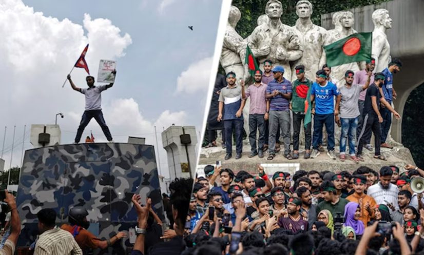 নেপালে কেপি শর্মা অলির সরকার পতন ঘটল মাত্র তিন দিনের আন্দোলনে। ক্ষমতাচ্যুত প্রধানমন্ত্রী তরুণদের দাবি নিয়ে উপহাস করেছিলেন—যা ক্ষোভকে আরও উসকে দিয়েছিল। বাংলাদেশে কোটাবিরোধী আন্দোলন দমন করতে পুলিশের সহিংসতা তরুণদের রাস্তায় নামতে বাধ্য করেছিল। শ্রীলঙ্কায় অর্থনীতির ধ্বংসস্তূপে ক্ষুধার্ত মানুষ রাজপথে নেমেছিল।