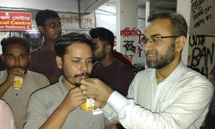 বুধবার (১৭ সেপ্টেম্বর) রাত ৯টা ৪৯ মিনিটে আন্দোলনকারীদের জুস পান করিয়ে অনশন ভাঙান বিশ্ববিদ্যালয়ের প্রক্টর অধ্যাপক ড. তাজ্জাম্মুল হক। এর আগে, মঙ্গলবার (১৬ সেপ্টেম্বর) দুপুর থেকে তিন দফা দাবিতে অনশন শুরু করেন শিক্ষার্থীর।