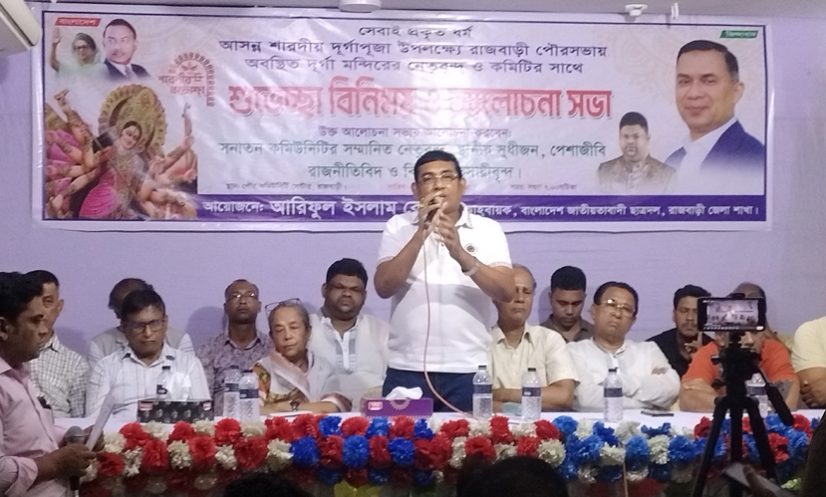 রাজবাড়ী: আসন্ন শারদীয় দুর্গোৎসব উপলক্ষ্যে রাজবাড়ী পৌরসভায় অবস্থিত দুর্গা মন্দিরের নেতাদের ও কমিটির সঙ্গে শুভেচ্ছা বিনিময় ও আলোচনা সভা অনুষ্ঠিত হয়েছে।
