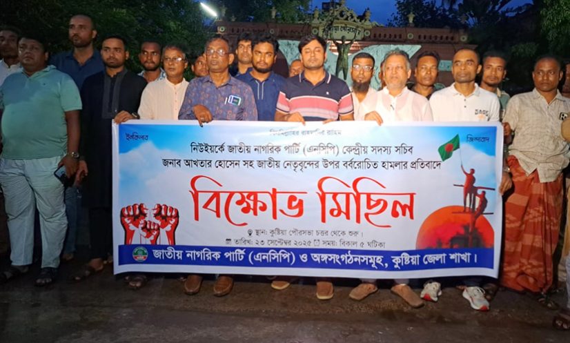 কুষ্টিয়া: যুক্তরাষ্ট্রের নিউইয়র্কে জাতীয় নাগরিক পার্টির (এনসিপি) সদস্যসচিব আখতার হোসেনসহ রাজনীতিবিদদের ওপর হামলার প্রতিবাদে কুষ্টিয়ায় বিক্ষোভ মিছিল করেছে দলটির নেতাকর্মীরা।