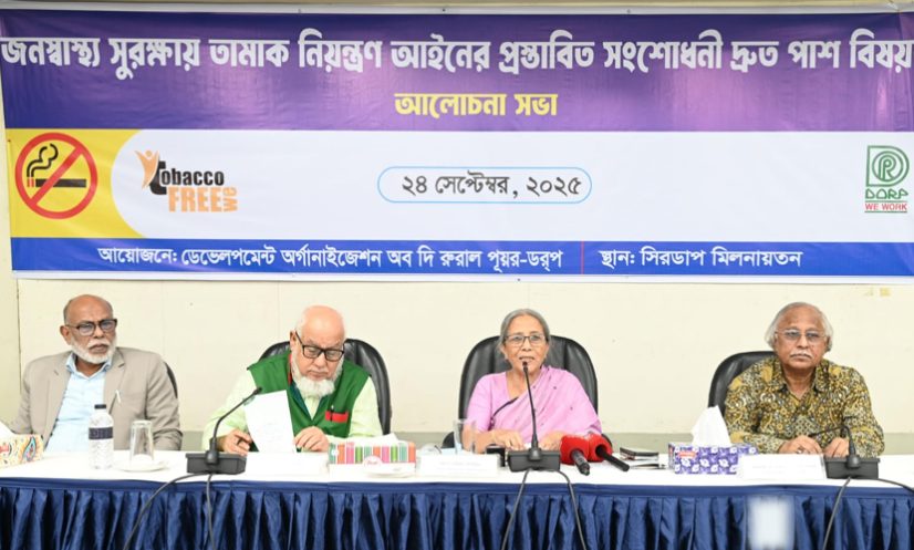 বুধবার (২৪ সেপ্টেম্বর) বিকেলে সিরডাপ মিলনায়তনে ডেভেলপমেন্ট অর্গানাইজেশন অব দ্য রুরাল পুওর (ডরপ) আয়োজিত ‘জনস্বাস্থ্য সুরক্ষায় তামাক নিয়ন্ত্রণ আইনের প্রস্তাবিত সংশোধনী দ্রুত পাশ’ শীর্ষক আলোচনা সভায় প্রধান অতিথির বক্তব্যে তিনি এসব কথা বলেন।