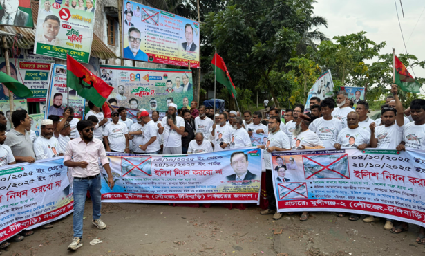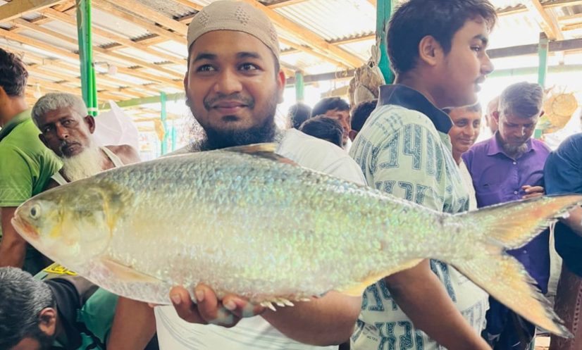 ক্রেতা ইশতিয়াক বলেন, বঙ্গোপসাগরে ধরা পড়া বিশাল সাইজের ইলিশ কিনেছি লাভের আশায়, মাছটি ঢাকায় পাঠাবো।
