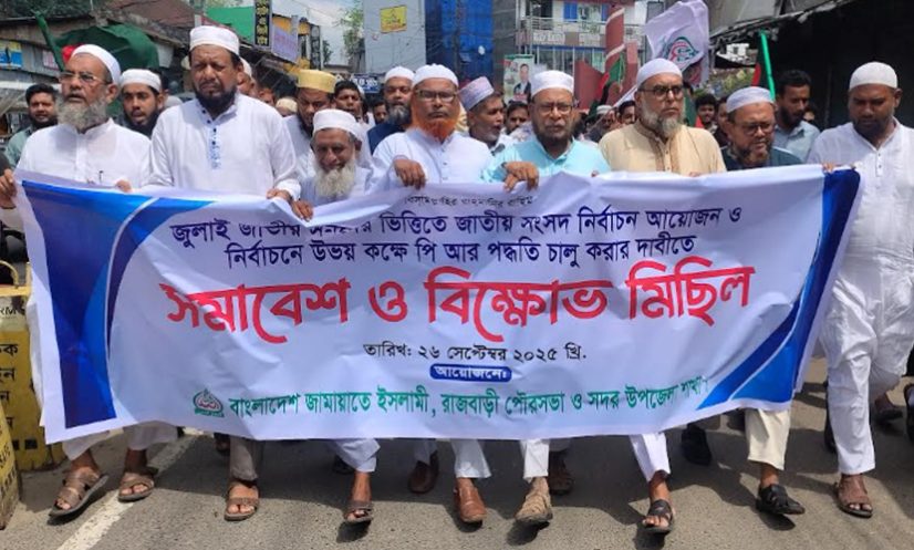 রাজবাড়ীতে ৫ দফা দাবিতে জামায়াতে ইসলামীর বিক্ষোভ মিছিল