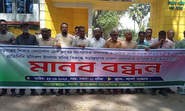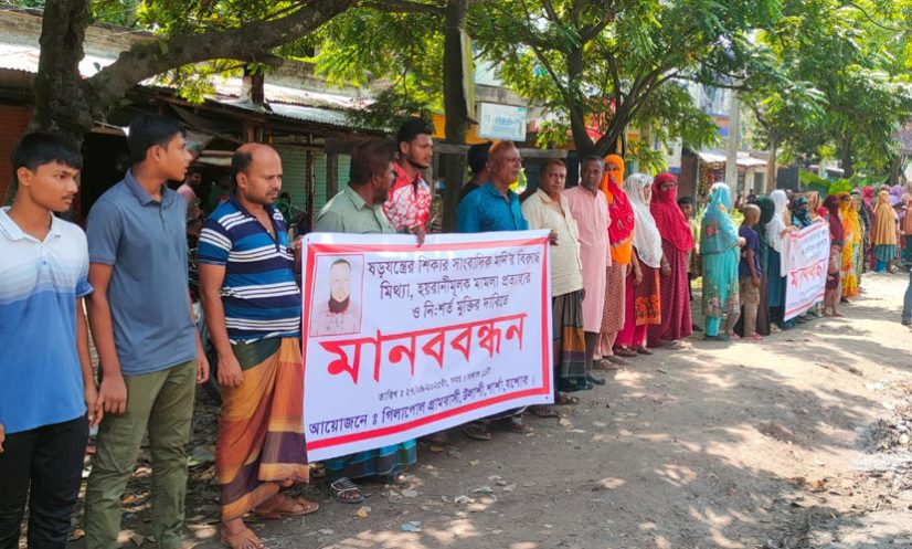 বেনাপোল : যশোরের শার্শায় যড়যন্ত্রের শিকার সাংবাদিক মনিরুল ইসলাম মনির বিরুদ্ধে মিথ্যা, হয়রানিমূলক মামলা প্রত্যাহার ও নিঃশর্ত মুক্তির দাবিতে মানববন্ধন করেছে স্থানীয়রা।
