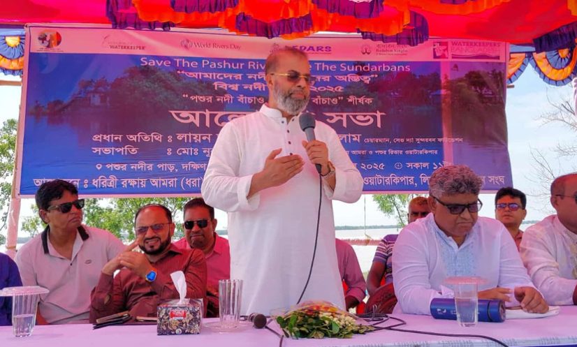 রোববার ( ২৮ সেপ্টেম্বর) সকালে বাগেরহাটের মোংলার দক্ষিণ কাইনমারি পশুর নদীর পাড়ে বিশ্ব নদী দিবস উপলক্ষে ‘পশুর নদী বাঁচাও, সুন্দরবন বাঁচাও’ শীর্ষক আলোচনা সভায় বক্তারা এসব কথা বলেন।