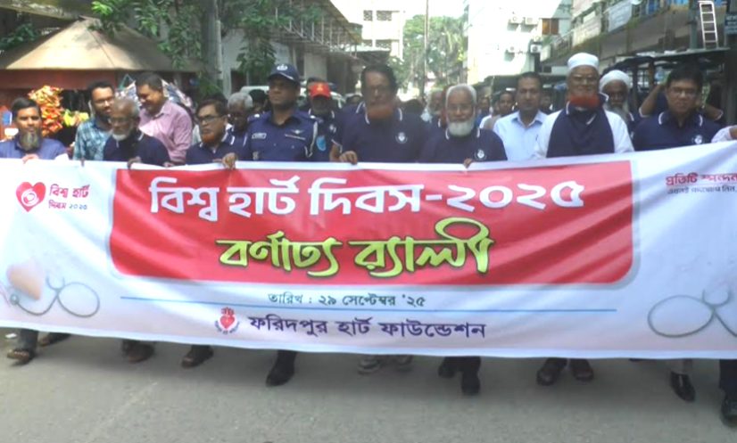 ফরিদপুর: বর্ণাঢ্য র্যালি ও আলোচনা সভাসহ নানা আয়োজনের মধ্য দিয়ে ফরিদপুরে বিশ্ব হার্ট দিবস পালিত হয়েছে।