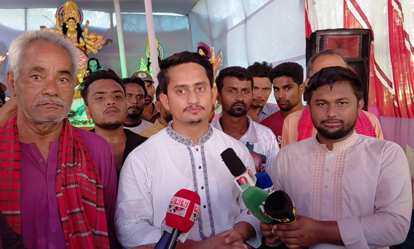 তিনি আরও বলেন, ‘অভ্যুত্থানের পূর্ববর্তী সময়ে ওই আওয়ামী লীগ শুধু নামকাওয়াস্তে যখন দরকার ছিল তখন আমাদের সনাতন ধর্মের ভাইদের কাছে এসেছে। কিন্তু, আপনারা দেখে থাকবেন তখন বাংলাদেশের অনেক বড় বড় মন্দিরে প্রতিমা ভাঙচুরের ঘটনা ঘটেছে। লোক দেখানো একটা কমিটি হয়েছিল। তখন লোক দেখানো দুই একজনকে গ্রেফতার করা হয়েছে। কিন্তু, তখন আমরা না দেখেছি কোনো দৃশ্যমান শাস্তি, না দেখেছি কঠিন কোনো বিচার। এই কারণে কিন্তু অনেক ষড়যন্ত্রকারী চক্রান্তকারী ওই টুলটাকে বারবার ব্যবহার করেছে এবং ধর্মীয় যে আমাদের সম্প্রীতির পরিবেশ ওই জায়গায় ব্যাঘাত ঘটানোর চেষ্টা করেছে। আমাদের জাতীয় নাগরিক পার্টি এনসিপির পক্ষ থেকে আমাদের সরকারের পাশে স্পষ্ট আহ্বান থাকবে এরকম কোন অনাকাঙ্খিত ঘটনা যদি বাংলাদেশে ঘটে থাকে, তাহলে আপনারা দৃশ্যমান সর্বোচ্চ শাস্তির ব্যবস্থা করবেন। গতকাল থেকে এখন পর্যন্ত আমরা পঞ্চগড়ের পনেরোটা দুর্গা মন্দিরে গেছি। প্রত্যেক জায়গায় আমরা বিজিবি, পুলিশ, র্যার, আনসার বাহিনী যারা আছে তাদের বিভিন্ন ধরনের উপস্থিতি আমরা ভালোভাবে দেখেছি এবং নিরাপত্তা আমাদের কাছে সন্তোষজনক ছিল।’