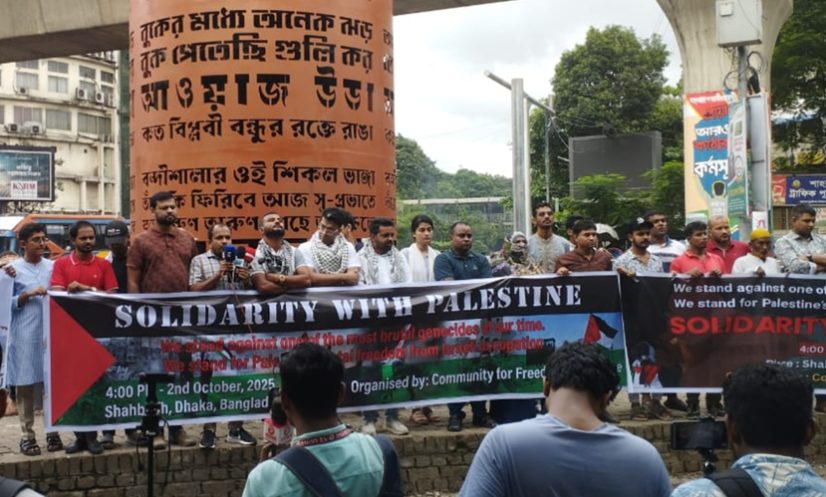 বৃহস্পতিবার (২ অক্টোবর) ঢাকার শাহবাগে আয়োজিত ‘সলিডারিটি উইথ ফিলিস্তিন’ শীর্ষক সংহতি সমাবেশে এ দাবি জানানো হয়।