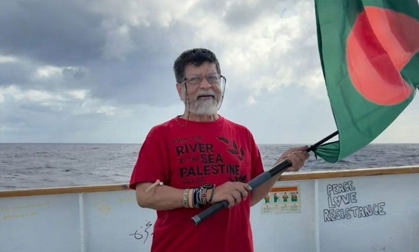 বাংলাদেশের খ্যাতিমান আলোকচিত্রী শহিদুল আলমসহ একদল সাংবাদিক, চিকিৎসক ও অধিকারকর্মী যে জাহাজে চড়ে গাজার দিকে যাচ্ছেন, সেটির ওপর দিয়ে আজ উড়েছে একটি সামরিক বিমান। সেটি ইসরায়েলের সামরিক বিমান বলে ধারণা করেছেন ওই জাহাজে থাকা উইলিয়াম আলেকজান্ডার।