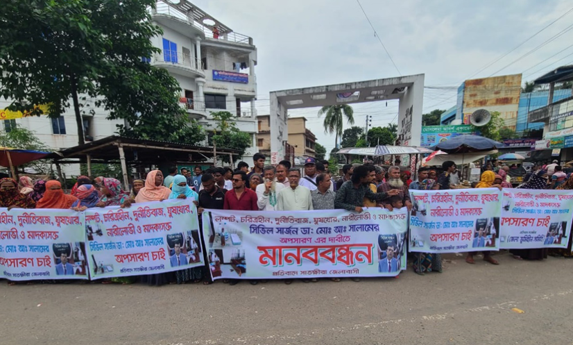 বক্তারা আরো বলেন-ডা. আব্দু সালাম প্রশাসনিক ক্ষমতা ব্যবহার করে সরকারি হাসপাতালগুলোকে ব্যক্তিগত ব্যবসা প্রতিষ্ঠানে পরিণত করেছেন। তার কর্মকাণ্ডে অতিষ্ঠ সাধারন কর্মচারীরা। সাতক্ষীরার মানুষ চায় একটি স্বচ্ছ, জবাবদিহিমূলক স্বাস্থ্য প্রশাসন। কিন্তু বর্তমান সিভিল সার্জন সেই জায়গা কলঙ্কিত করেছেন। সাতক্ষীরার সিভিল সার্জন ডা. আব্দুস সালামকে অবিলম্বে অপসারণ করতে হবে, তার বিরুদ্ধে নারী নির্যাতন, ক্ষমতার অপব্যবহার ও দুর্নীতির তদন্ত করে আইনি ব্যবস্থা নিতে হবে এবং স্বাস্থ্যখাতকে রাজনৈতিক প্রভাব ও অনৈতিক কর্মকাণ্ড থেকে মুক্ত রাখতে হবে।