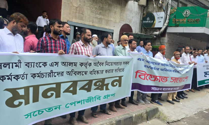 ঢাকা: ইসলামী ব্যাংক বাংলাদেশ-এ এস আলম গ্রুপের ‘অবৈধভাবে নিয়োগ দেওয়া অদক্ষ কর্মকর্তা-কর্মচারী’দের অপসারণের দাবিতে ঢাকাসহ সারাদেশে মানববন্ধন ও বিক্ষোভ সমাবেশ হয়েছে।