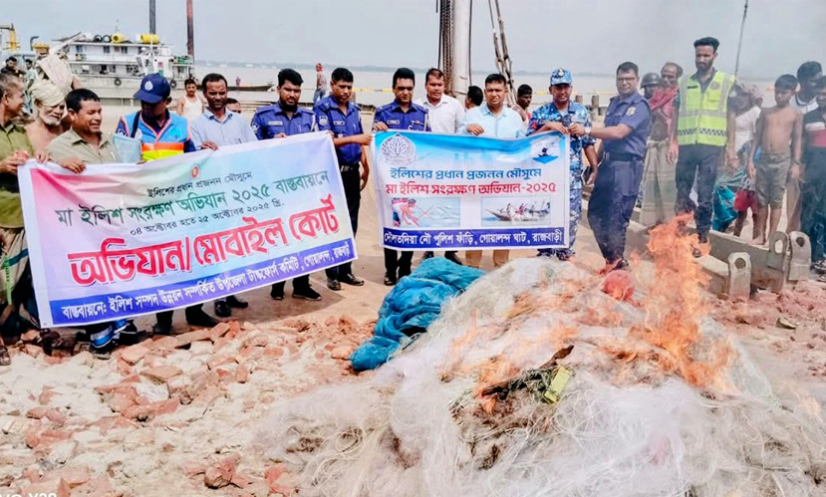 ৫০ হাজার মিটার কারেন্ট জাল পুড়িয়ে ধ্বংস, নৌকা নিলামে বিক্রি