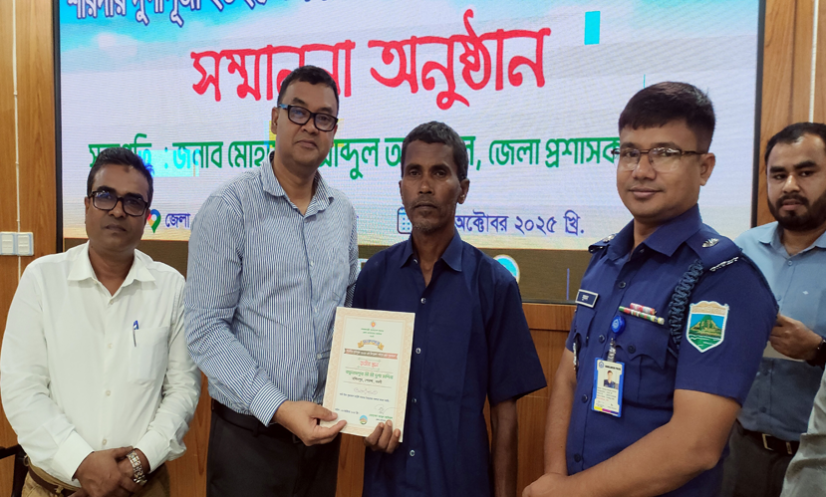 এসময় জেলা প্রশাসক মোহাম্মদ আব্দুল আউয়াল বলেন, ‘একটি ভালো কাজের স্বীকৃতি পরবর্তী হাজারটি ভালো কাজ করার অনুপ্রেরণা যোগায়। তাই এবার জেলার সকল ধর্মের ও সকল শ্রেণীপেশার মানুষের সার্বিক সহযোগিতা নিয়ে অত্যন্ত শান্তিপূর্ণ পরিবেশে শারদীয় দুর্গা পূজা সম্পন্ন করতে পেরেছি। তাই দুর্গা পূজার মতো এমন মহাকর্মযজ্ঞ ভালোভাবে সম্পন্ন করার পেছনে যে সকল কর্মকর্তা ও পূজামণ্ডপের নেতৃবৃন্দের অক্লান্ত ভূমিকা রয়েছে, সেই সব মানুষগুলোকে ভালো কাজের স্বীকৃতি হিসেবে এই সামান্য সম্মাননা প্রদান। আগামীতেও জেলা প্রশাসনের পক্ষ থেকে এই ধরণের কর্মকান্ড অব্যাহত রাখা হবে বলে জানান এই কর্মকর্তা।