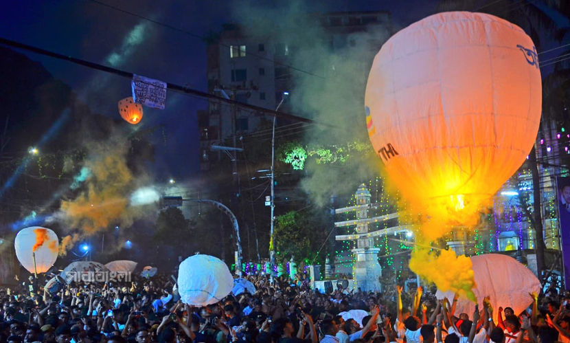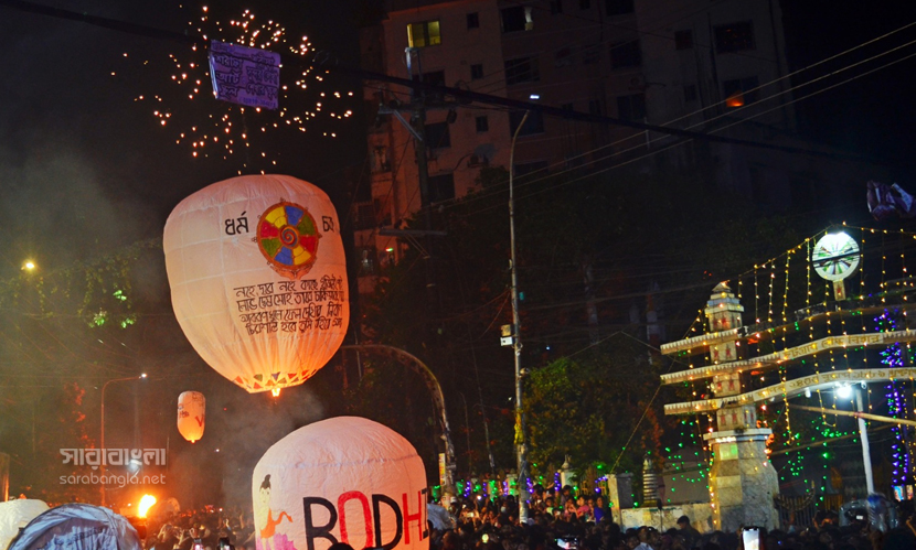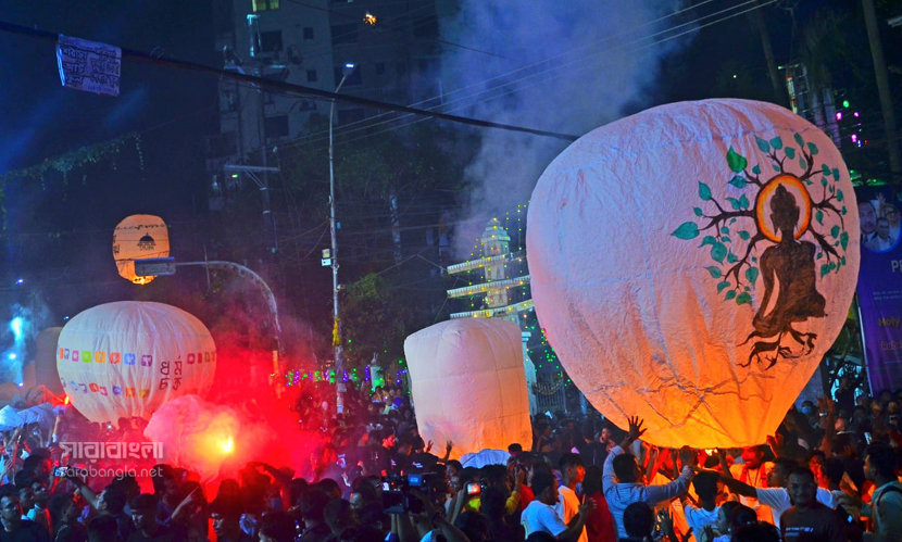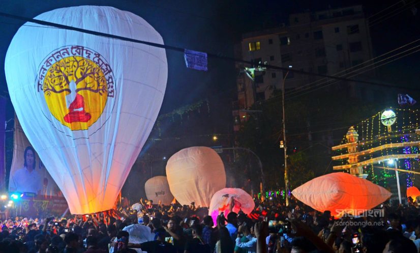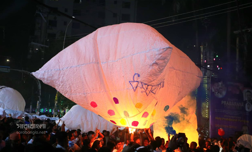 বৌদ্ধ সম্প্রদায়ের দ্বিতীয় বৃহত্তম ধর্মীয় উৎসব শুভ প্রবারণা পূর্ণিমায় ফানুস উৎসবে মেতেছেন বৌদ্ধ সম্প্রদায়। সন্ধ্যায় নানা রঙের ফানুস ও বেলুন উড়িয়ে এই উৎসব উদযাপন করেছেন তারা। প্রবারণা পূর্ণিমা উপলক্ষ্যে বৌদ্ধমন্দির ও বিহারগুলোতে পূজা-পার্বণ, প্রদীপ প্রজ্বালন, ফানুস ওড়ানোসহ ধর্মীয় নানা আয়োজন ছিল আজ। ছবিগুলো নগরীর নন্দনকানন বৌদ্ধ মন্দির থেকে ফ্রেমবন্দি করেছেন সারাবাংলার স্টাফ ফটোকরেসপন্ডেন্ট শ্যামল নন্দী।