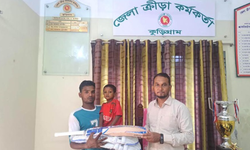 কুড়িগ্রাম: কুড়িগ্রামের নাগেশ্বরী উপজেলার কেদার ইউনিয়নের গোলেরহাট গ্রামের বিস্ময় বালক ক্ষুদে ক্রিকেটার মোহাম্মদ ঈসার পাশে দাঁড়িয়েছে কুড়িগ্রাম জেলা ক্রীড়া অফিস।