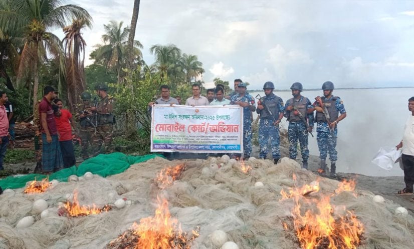 জব্দ হওয়া জাল জনসম্মুখে পুড়িয়ে ধ্বংস করা হয়।