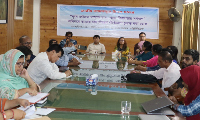 রাজধানীর মোহাম্মদপুরে ডাব্লিউবিবি ট্রাস্ট’র সভাকক্ষে অনুষ্ঠিত এ সভায় সভাপতিত্ব করেন বাংলাদেশ তামাকবিরোধী জোটের ভারপ্রাপ্ত সমন্বয়কারী এবং প্রত্যাশা মাদকবিরোধী সংগঠনের সাধারণ সম্পাদক হেলাল উদ্দিন আহমেদ।
