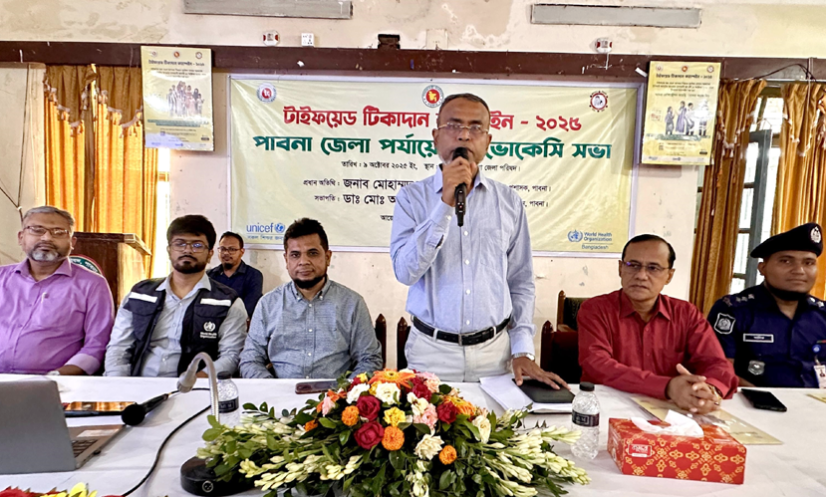 দেশব্যাপী টাইফয়েডের টিকা প্রদান ক্যাম্পেইন নিয়ে সচেতনতা বৃদ্ধির লক্ষে বৃহস্পতিবার (৯ অক্টোবর) পাবনায় স্থানীয় গণমাধ্যম কর্মীদের সঙ্গে পরামর্শবিষয়ক কর্মশালায় এসব তথ্য জানানো হয়। পাবনা জেলা তথ্য অফিসের আয়োজনে জেলা পরিষদে রশিদ হল মিলনায়তনে এই কর্মশালা অনুষ্ঠিত হয়।