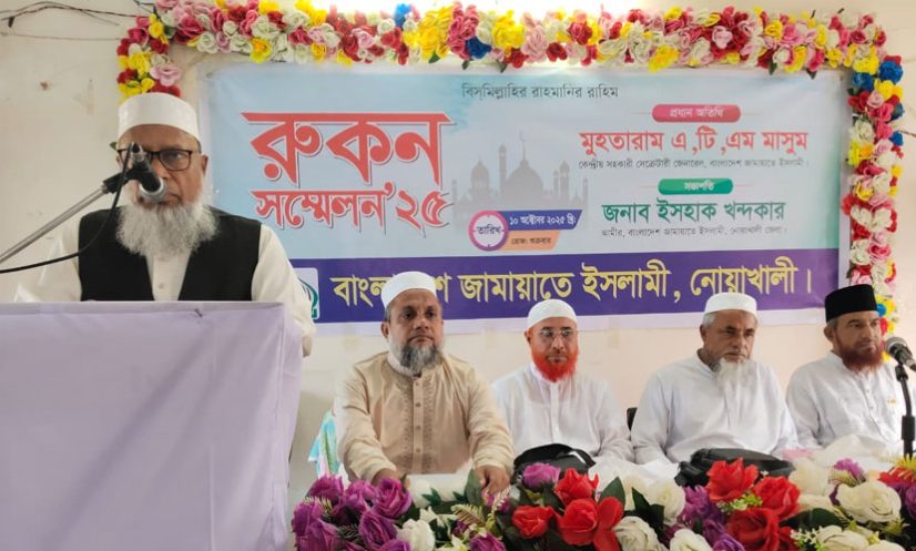 নোয়াখালী: বাংলাদেশ জামায়াতে ইসলামী নোয়াখালী জেলার উদ্যোগে রুকন সম্মেলন অনুষ্ঠিত হয়েছে। এতে সুষ্ঠু নির্বাচনের জন্য পিআর পদ্ধতিতে নির্বাচন নিশ্চিত করার কথা বলেছেন বাংলাদেশ জামায়াতে ইসলামীর কেন্দ্রীয় সহকারী সেক্রেটারী জেনারেল এ টি এম মাসুম।