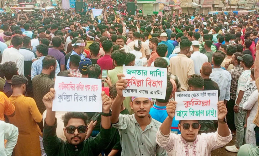 কুমিল্লা: কুমিল্লা বিভাগ দাবিতে রাজপথে নেমেছেন হাজার মানুষ। কুমিল্লা বিভাগ বাস্তবায়ন না হওয়া পর্যন্ত রাজপথে থাকার হুঁশিয়ারি দেন তারা।