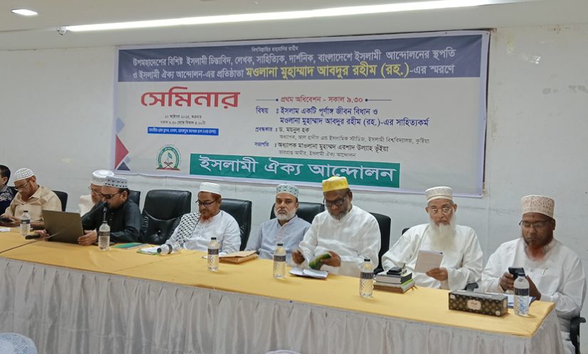 শুক্রবার (১০ অক্টোবর) জাতীয় প্রেস ক্লাবের আব্দুস সালাম হলে দিনব্যাপী সেমিনারে সভাপতির বক্তব্যে তিনি এসব কথা বলেন। মরহুম মাওলানা মুহাম্মদ আবদুর রহীম স্মরণে এই সেমিনারের আয়োজন করে তারই প্রতিষ্ঠিত সংগঠন ইসলামী ঐক্য আন্দোলন।