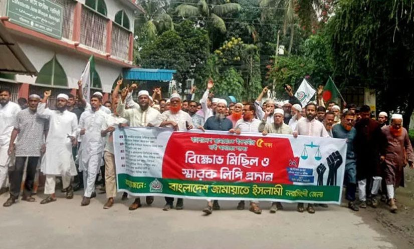 সকালে নরসিংদী পৌর শহরের শিক্ষাচত্ত্বর এলাকায় বিক্ষোভ সমাবেশ শেষে কয়েকশত নেতাকর্মী জেলা প্রশাসক মোহাম্মদ আনোয়ার হোসাইনের মাধ্যমে প্রধান উপদেষ্টার কাছে স্মারকলিপি প্রদান করেন।