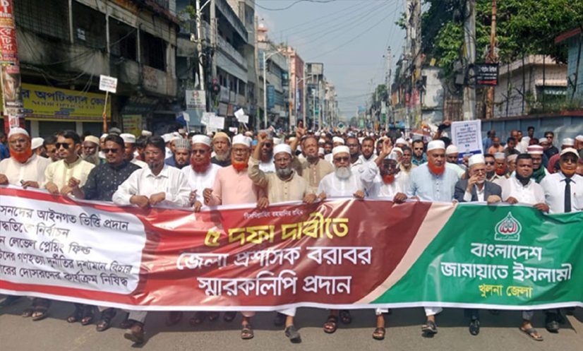 রোববার (১২ অক্টোবর) সকালে কেন্দ্রীয় ঘোষিত কর্মসূচির অংশ হিসেবে খুলনা জেলা জামায়াতে ইসলামীর উদ্যোগে নগরীর ডাকবাংলো চত্বরে সংক্ষিপ্ত সমাবেশ শেষে মিছিল সহকারে খুলনা জেলা প্রশাসকের কার্যালয়ে গিয়ে জড়ো হয়। এখান থেকে নেতারা খুলনা জেলা প্রশাসকের দফতরে গিয়ে জেলা প্রশাসক মো. তৌফিকুর রহমানের হাতে স্মারকলিপি তুলে দেন।