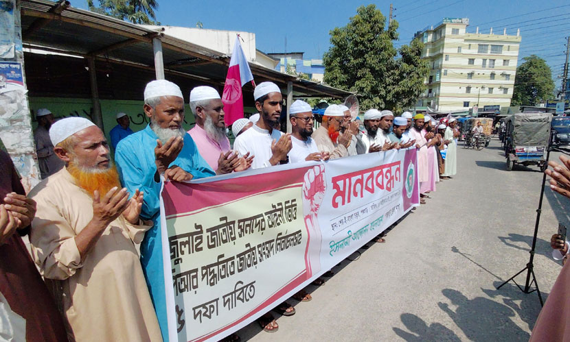 মানববন্ধনে জেলা জামায়াতের আমীর বলেন, ‘জুলাই সনদের ভিত্তিতে জাতীয় নির্বাচন, নির্বাচনে উভয় কক্ষে পিআর পদ্ধতি চালু, অবাধ, সুষ্ঠু ও গ্রহণযোগ্য নির্বাচনের জন্য লেভেল প্লেয়িং ফিল্ড নিশ্চিত করতে হবে।’ এছাড়া, ফ্যাসিস্ট আওয়ামীলীগ সরকারের জুলুম-নির্যাতন, গণহত্যা ও দুর্নীতির বিচারের ব্যবস্থা, স্বৈরাচারপন্থী দলসমূহ বিশেষ করে জাতীয় পার্টি ও ১৪ দলীয় জোটের কার্যক্রম নিষিদ্ধের দাবী জানান তিনি।