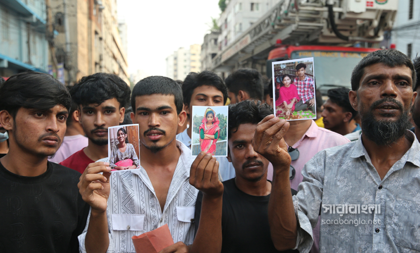 রাজধানীর মিরপুরের রূপনগরে আনোয়ার গার্মেন্টস ও কেমিক্যাল গোডাউনে লাগা ভয়াবহ আগুন নিয়ন্ত্রণে এসেছে প্রায় ২৭ ঘণ্টা পর। আগুনে এ পর্যন্ত ১৬ জনের নিহতের খবর পাওয়া গেছে। জানা গেছে, আগুন লাগা ওই গার্মেন্টস ও কেমিক্যাল গোডাউনের কোনো সরকারি অনুমোদন ছিল না। ছিল না পর্যান্ত আগুন নির্বাপন ও নিয়ন্ত্রণ ব্যবস্থা। এভাবেই যত্রতত্র গড়ে ওঠা পোশাক কারখানাগুলো যেন একেকটা মৃত্যুকূপ। যেখানে প্রতিনিয়ত পুড়ে মরে মানুষ ও মানবতা। গতকালের ভয়াবহ অগ্নিকাণ্ড ও মানুষের আহাজারির ছবিগুলো তুলেছেন সারাবাংলার সিনিয়র ফটোকরেসপন্ডেন্ট হাবিবুর রহমান।