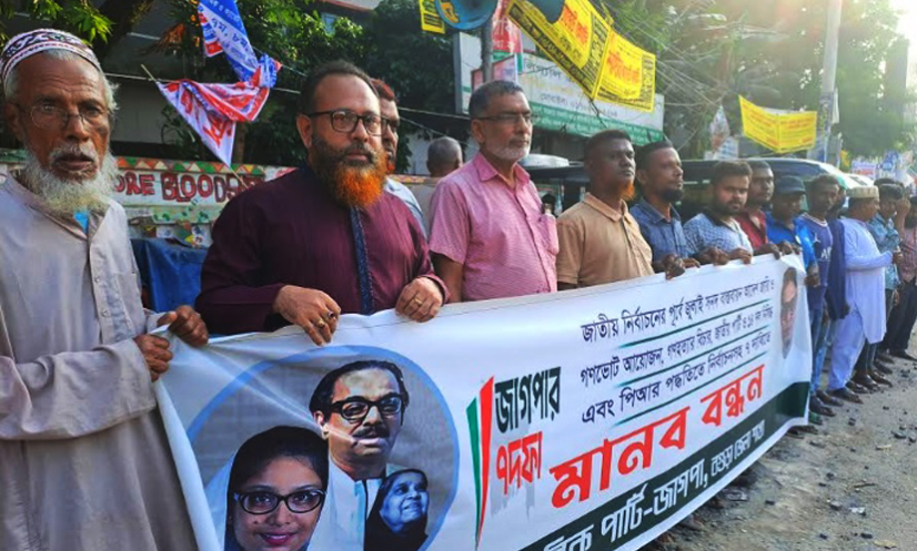 এতে সভাপতিত্ব করেন কেন্দ্রীয় জাগপার প্রেসিডিয়াম সদস্য ও জেলা জাগপার সভাপতি শামীম আকতার পাইলট। মানববন্ধনে জেলা জাগপার সহ-সভাপতি শামসুল হকসহ যুব জাগাপা, শ্রমিক জাগপা ও মহিলা জাগপার নেতৃবৃন্দ বক্তব্য রাখেন।