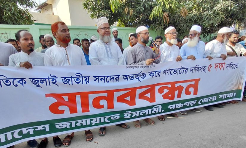 পঞ্চগড়: জুলাই জাতীয় সনদের আইনী ভিত্তি, পিআর পদ্ধতিতে জাতীয় সংসদ নির্বাচনসহ পাঁচ দফা দাবিতে মানববন্ধন কর্মসূচি পালন করেছে ইসলামী আন্দোলন বাংলাদেশ।