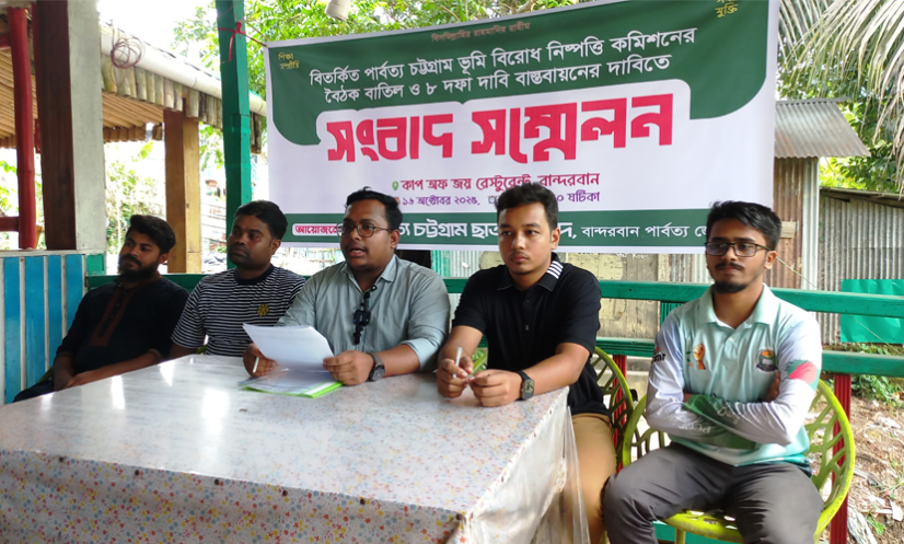 বান্দরবান: পার্বত্য চট্টগ্রাম ভূমি বিরোধ নিস্পত্তি কমিশনের বৈঠক বাতিল ও ৮ দফা দাবি বাস্তবায়নের দাবিতে বান্দরবানে সংবাদ সম্মেলন অনুষ্ঠিত হয়েছে।