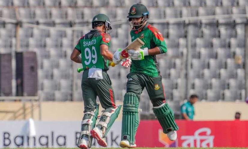 ৮ রানে পরপর দুই উইকেট হারিয়ে বেশ চাপে পড়ে বাংলাদেশ। এরপর বাংলাদেশের হাল ধরেছেন হৃদয়-শান্ত। এই জুটি কিছুটা ধীরগতির ব্যাটিং করলেও লম্বা সময় আর কোন বিপদ হতে দেননি।