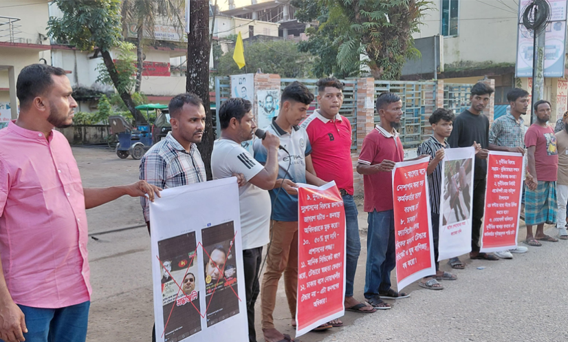 নোয়াখালীতে জনস্বাস্থ্য প্রকৌশলীর অপসারণের দাবিতে মানববন্ধন