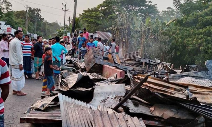 রোববার (১৯ অক্টোবর) ভোর রাতে উপজেলার স্লুইস গেট এলাকার আলী আহম্মদ মিয়ার বাজারে এই অগ্নিকাণ্ডের ঘটনা ঘটে।