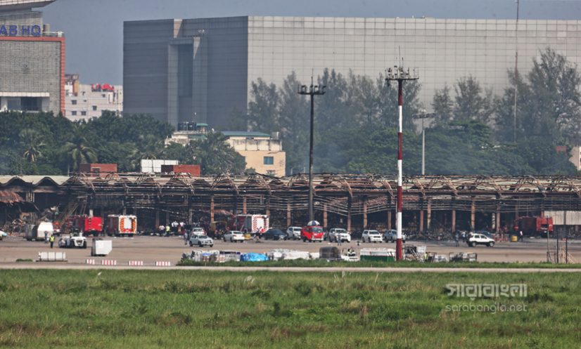 হযরত শাহজালাল আন্তর্জাতিক বিমানবন্দরের কার্গো ভিলেজে (পণ্য রাখার স্থান) হঠাৎ আগুনে পুড়েছে হাজারো কোটি টাকার মালামাল। ১৮ অক্টোবর লাগা এই আগুন নিয়ন্ত্রণে কাজ করে ফায়ার সার্ভিসের ৩৭টি ইউনিট। তাদের পাশাপাশি বাংলাদেশ বিমানবাহিনী, সেনাবাহিনী এবং নৌবাহিনীর ফায়ার, মেডিক্যাল ও সংশ্লিষ্ট ইউনিটের সদস্যরাও আগুন নেভানোর কাজে যোগ দেয়। এর পর টানা সাত ঘণ্টার প্রচেষ্টায় আগুন নিয়ন্ত্রণে আসে। তবে আগুন নেভাতে সময় লাগে পরদিন ১৯ অক্টোবর সকাল পর্যন্ত। আগুন নিয়ন্ত্রণে কাজ করতে গিয়ে আনসার বাহিনীর ২৫ সদস্যসহ মোট ৩৫ জন আহত হন। তবে এতে কেউ নিহত হননি। কার্গো ভিলেজের এই অগ্নিকাণ্ড এবং পরবর্তী অবস্থার ছবিগুলো ফ্রেমবন্দি করেছেন সারাবাংলার সিনিয়র ফটোকরেসপন্ডেন্ট হাবিবুর রহমান।