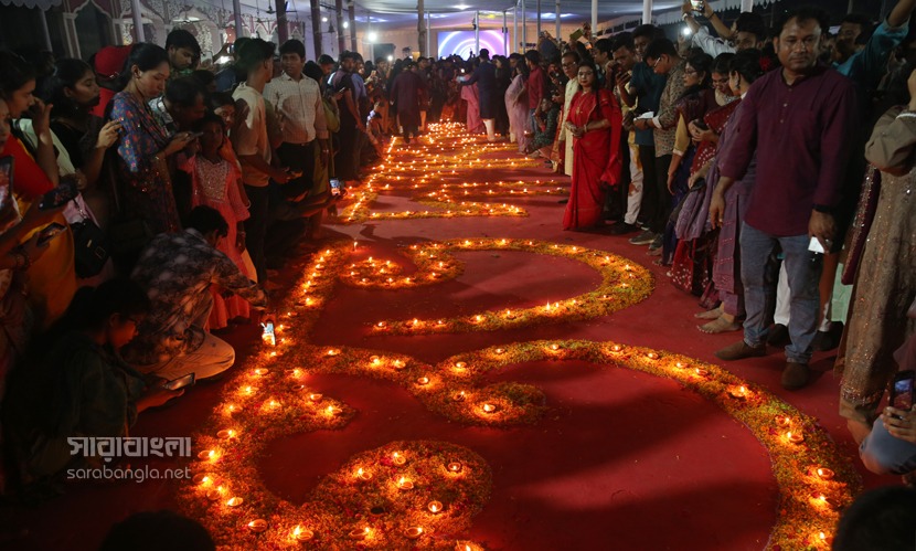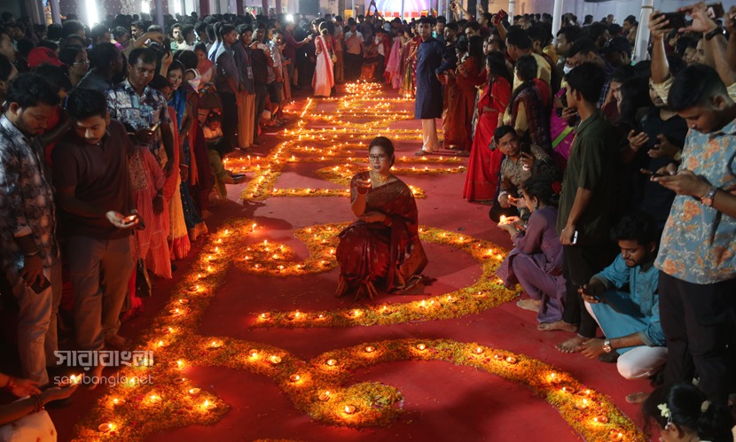 ‘দীপালিকায় জ্বালাও আলো,/ জ্বালাও আলো, আপন আলো, জয় করো এই তামসীরে’— রবীন্দ্রনাথ ঠাকুরের লেখা এই গানের পঙ্ক্তি যেন দীপাবলি উৎসবকে আরও প্রাণময় করে তোলে। ‘দীপাবলি’ সংস্কৃত শব্দ। সাধারণত ‘দীপ’ শব্দের অর্থ আলো এবং ‘বলি’ মানে সারি বা শ্রেণি। অর্থাৎ আলোর মালা বা আলোর সারি বোঝানো হয় দীপাবলিকে। এই দীপাবলিতে সম্পদের দেবী লক্ষ্মীর আরাধনা হয়ে থাকে। মানবজীবনের নিত্যকার অবসাদ-বিষাদ-আঁধার ঘুচিয়ে জ্ঞানের আলো জ্বালানোর আহ্বান এই উৎসবের মূল সুর। সনাতন ধর্মের প্রাজ্ঞজনেরা বিশ্বাস করেন, এই আলোর উৎসবকে কেন্দ্র করে মানুষ জ্ঞানের আলোর পথ খোঁজে। প্রতিবছরের মতো এবারও দীপাবলিতে আলোর উৎসবে মেতেছিল সনাতন ধর্মের মানুষেরা। সেই উৎসবের ছবি ফ্রেমবন্দি করেছেন সারাবাংলার সিনিয়র ফটোকরেসপন্ডেন্ট হাবিবুর রহমান।