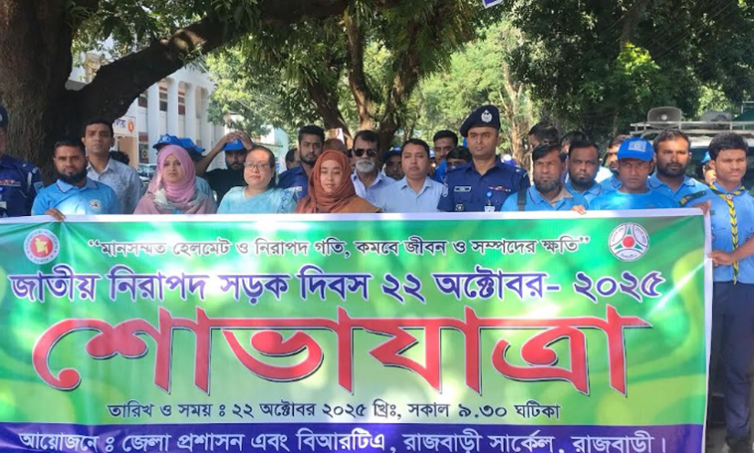 রাজবাড়ী: ‘মানসম্মত হেলমেট ও নিরাপদ গতি কমবে সম্পদ ও জীবনের ক্ষতি’-এই পতিপাদ্যকে সামনে রেখে রাজবাড়ীতে উদযাপিত হয়েছে জাতীয় নিরাপদ সড়ক দিবস।