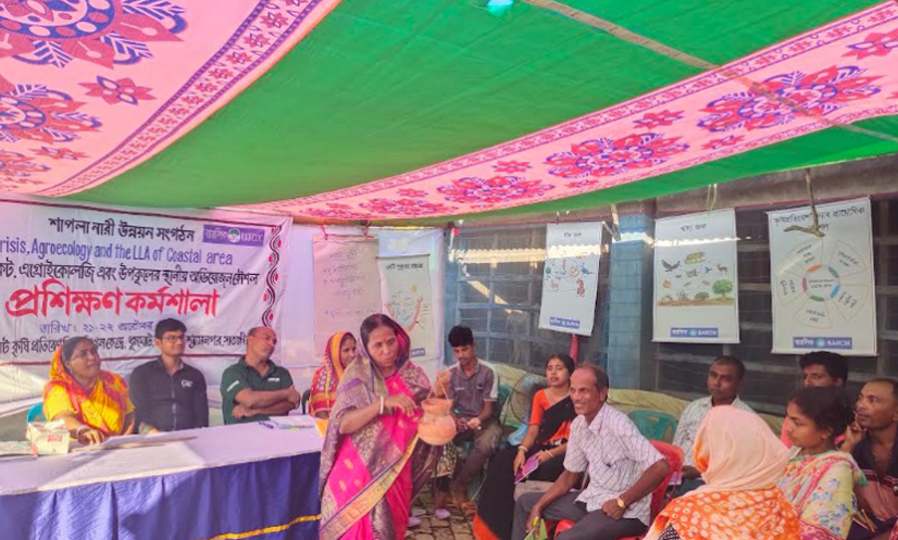 বুধবার (২২ অক্টোবর) উপজেলার ঈশ্বরীপুর ইউনিয়নের ধূমঘাট কৃষিপ্রতিবেশবিদ্যা শিখন কেন্দ্রে গবেষণা প্রতিষ্ঠান বারসিক ও শাপলা নারী উন্নয়ন সংগঠনের আয়োজনে ‘জলবায়ু সংকট, এগ্রোইকোলজি ও উপকূলের স্থানীয় অভিযোজন কৌশল’ বিষয়ক এই প্রশিক্ষণ কর্মশালা অনুষ্ঠিত হয়।
